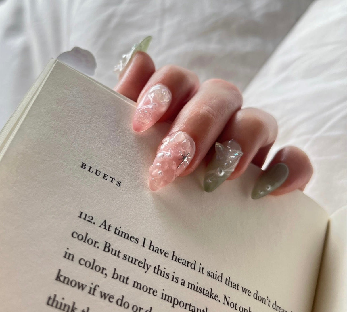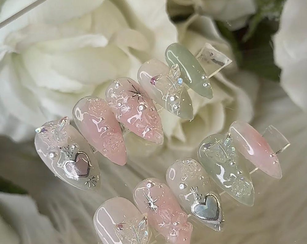 Im beyond impressed with these nails~!The quality is amazing—they feel sturdy and well-made, not flimsy like some press-ons I’ve tried before. They look exactly like the pictures, if not even prettier in person! The design is flawless, and they have such a professional, salon-like finish. So pretty.