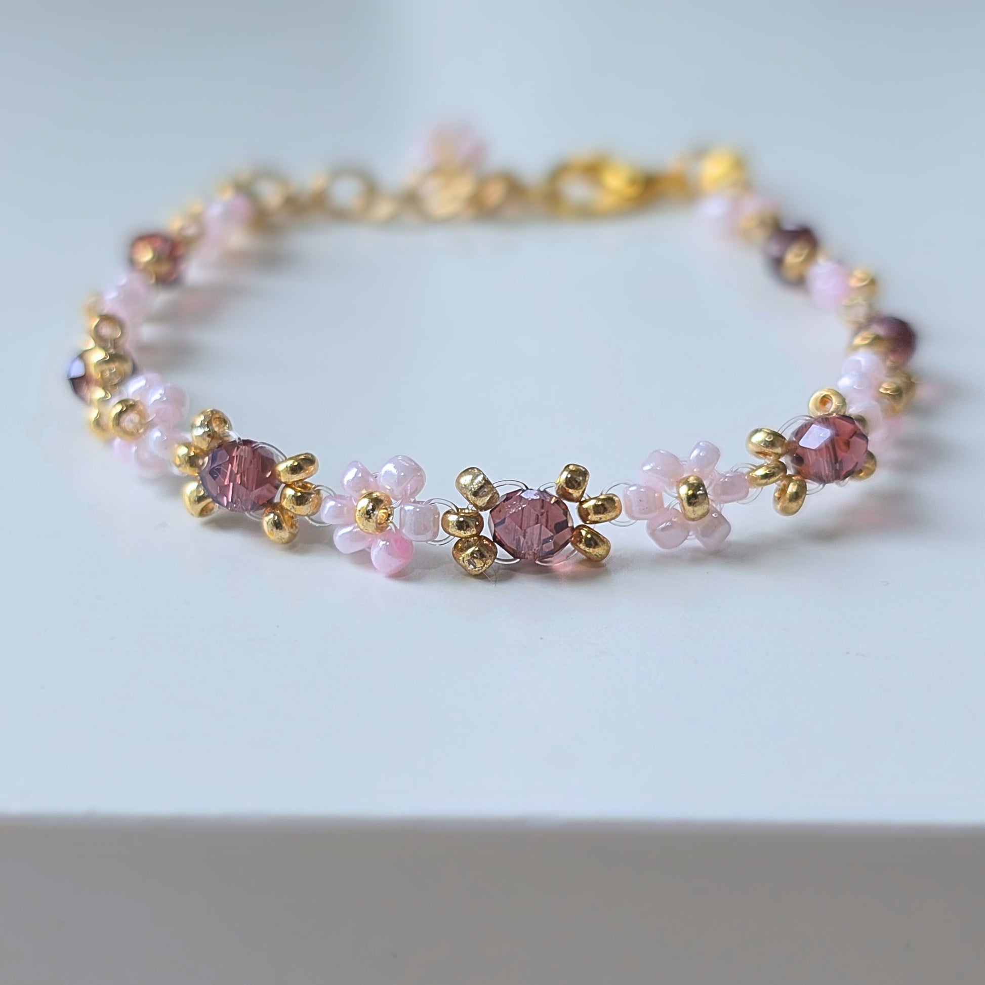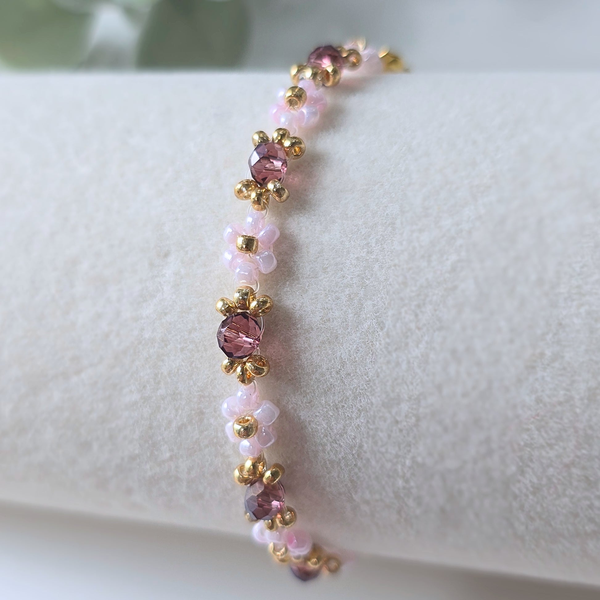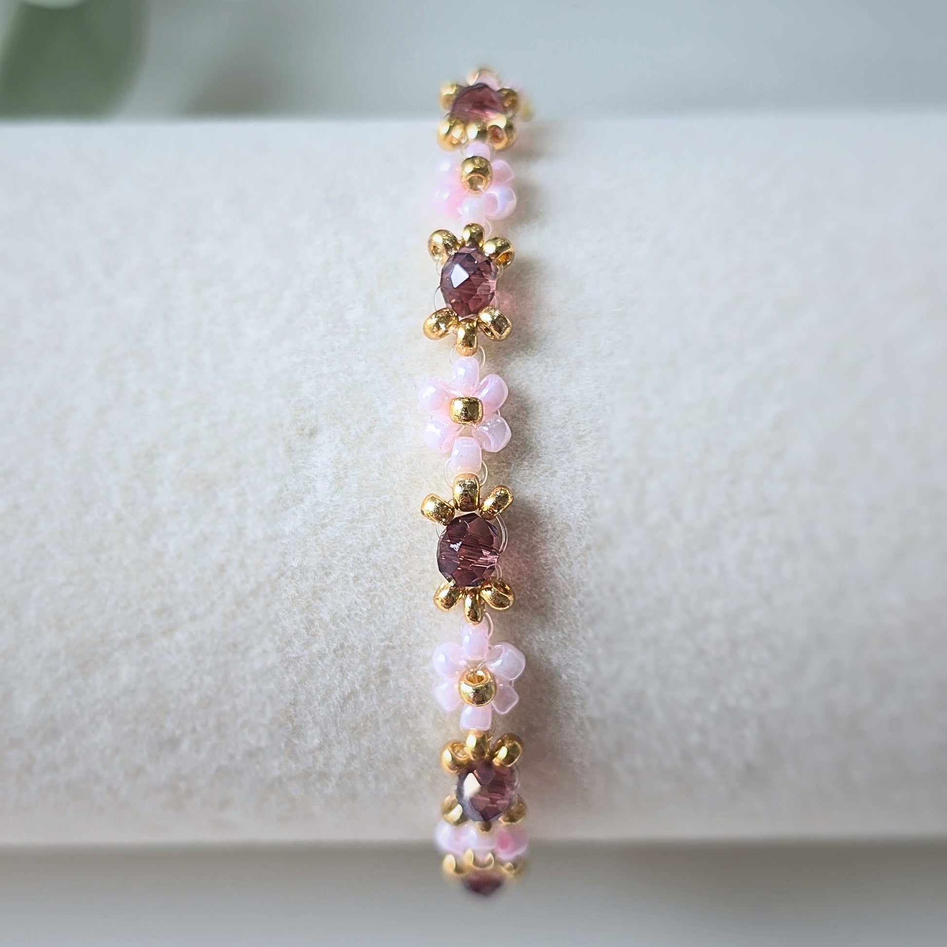 Zoe is a handmade bead bracelet, featuring a deep crystal purple bead accented with delicate light pink seed beads. The combination of colors creates a sophisticated and charming accessory that adds a touch of elegance to any outfit. Crafted with care, this bracelet is a must-have for those seeking a unique and stylish piece.