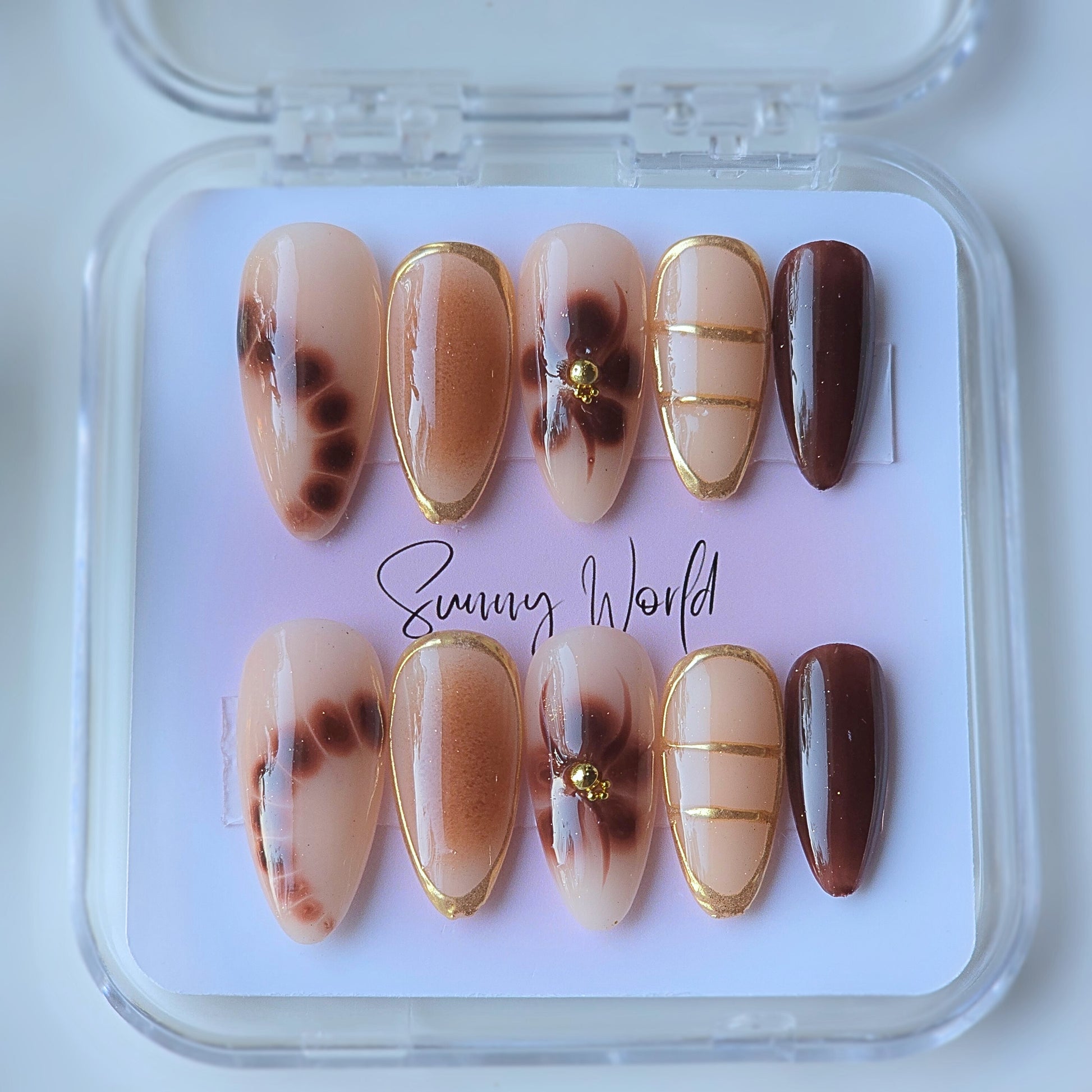 Experience the beauty of the fall season with our Autumn handmade freestyle nail. These trendy and sturdy nails will elevate your look while showcasing the colors and textures of autumn. Add a touch of nature to your style.