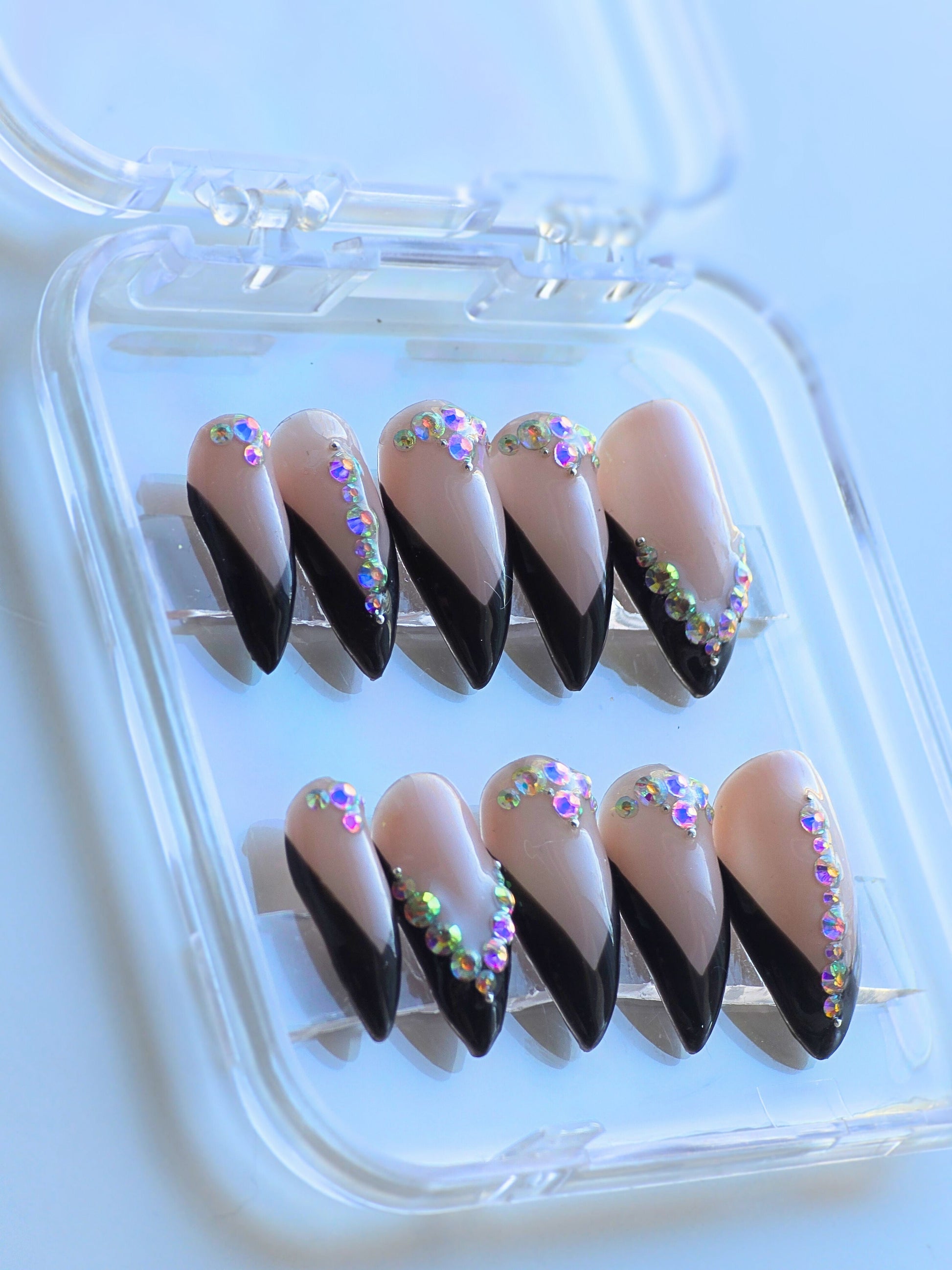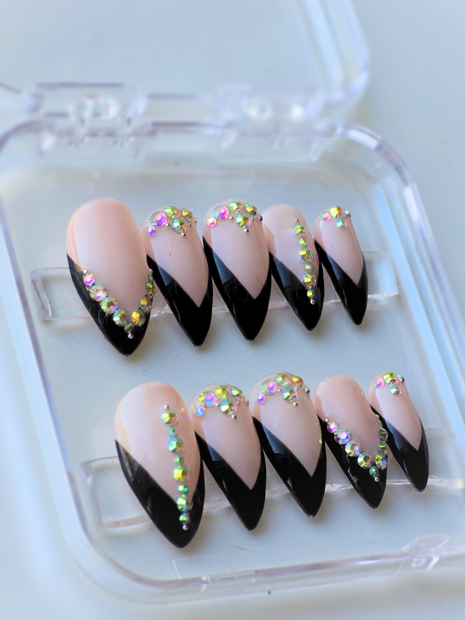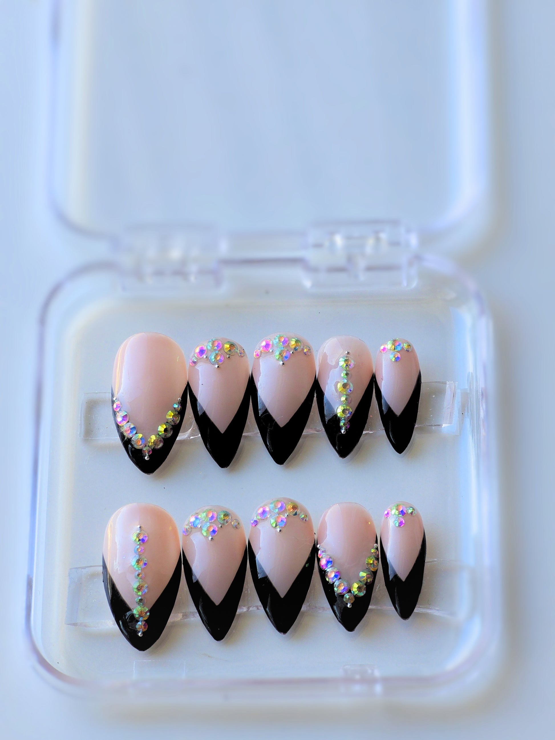 Sparkle Dream is made with high quality reflective sparkle chrome. It is very detailed. The photo shows the press on under normal lighting and under sunlight. Under the sunlight, the nails sparkles almost like water effect. It is a very beautiful and unique press-on design by the shop.