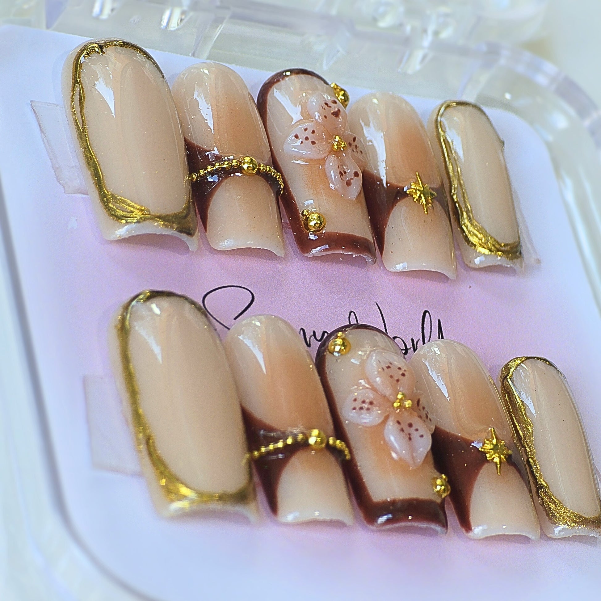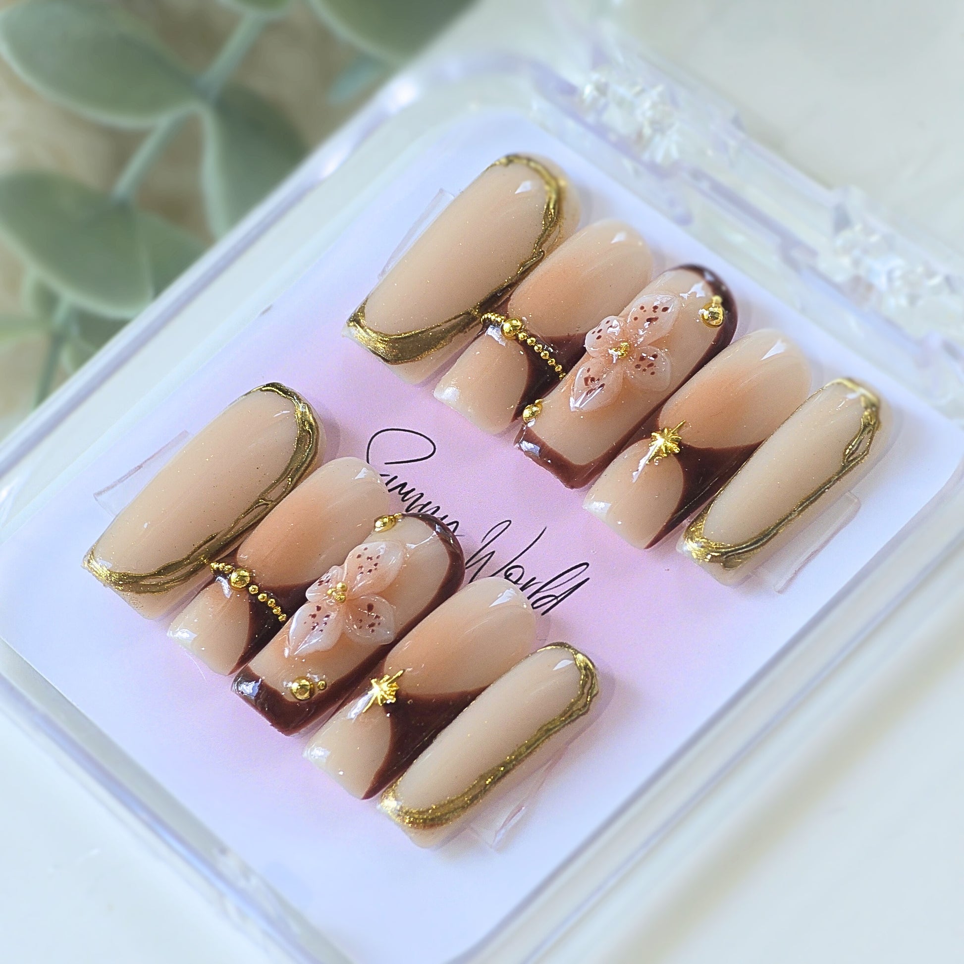 Estella is a beautifully designed press-on nail set with a trendy long coffin shape. Its sturdy construction ensures long-lasting wear. Elevate your style with Estella.