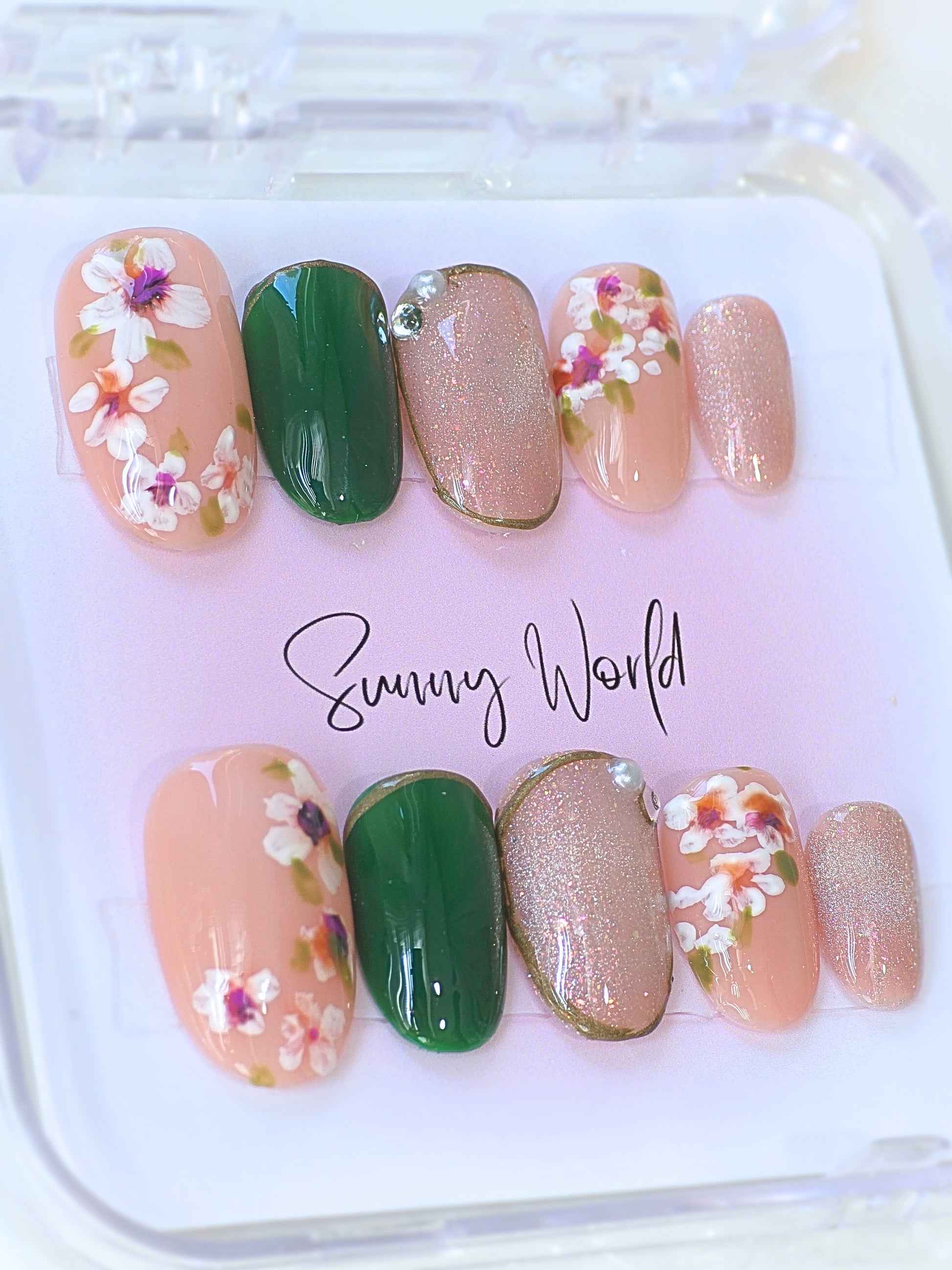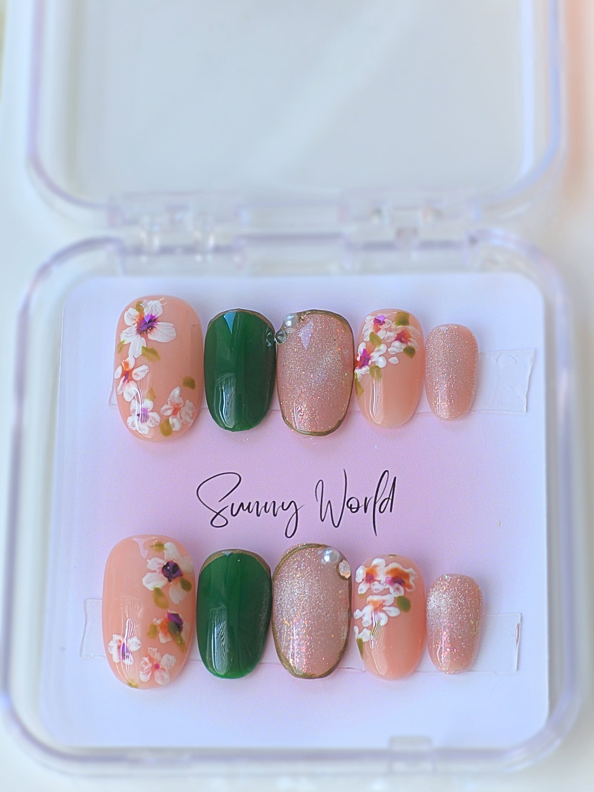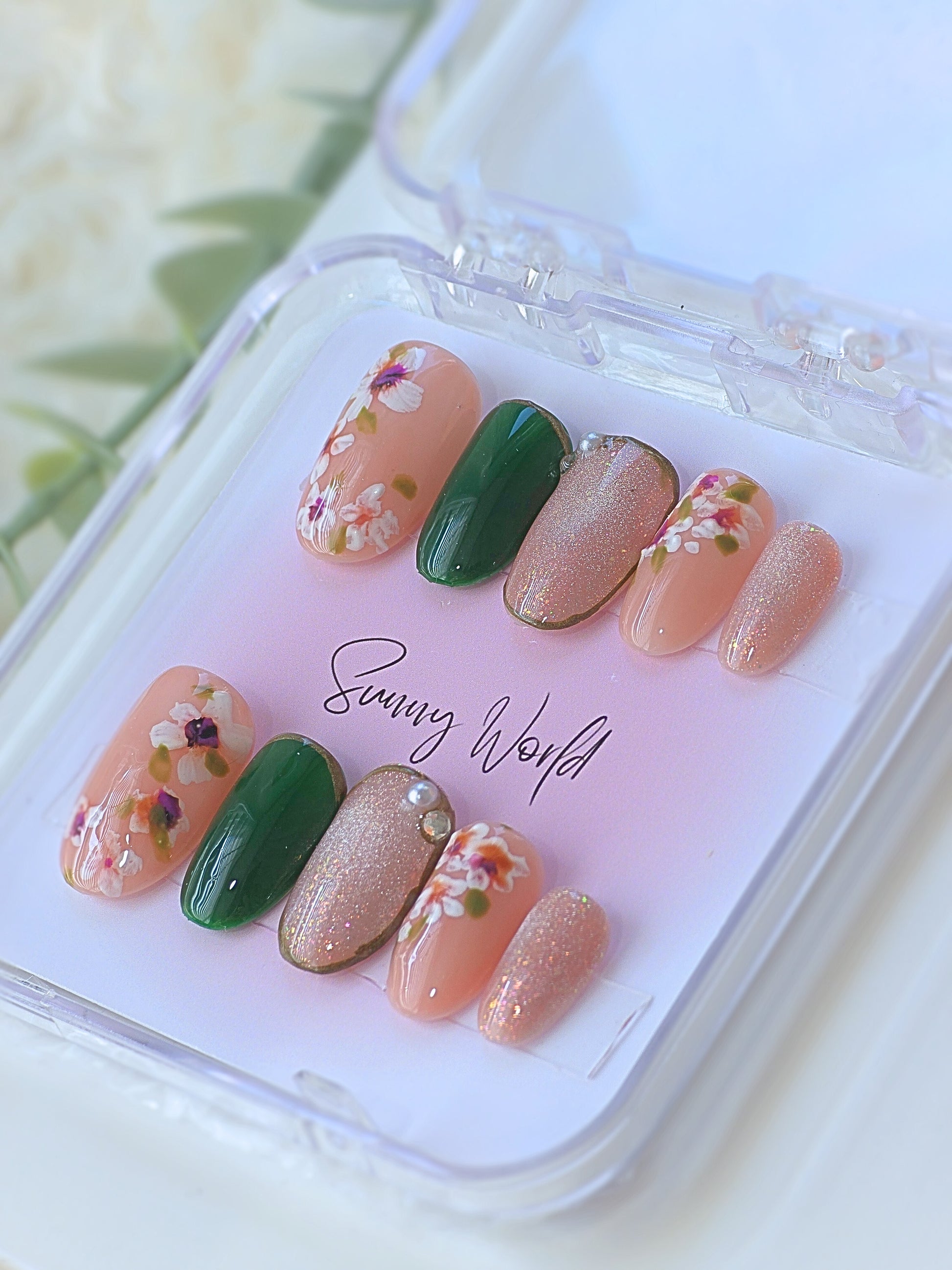 Experience the beauty of nature with Forest nails. Each set features hand-drawn flowers and stunning artwork that will elevate your everyday look. Made with sturdy and reusable salon-quality materials, these short round nails are a must-have for your collection. Get ready to turn heads with Forest nails.