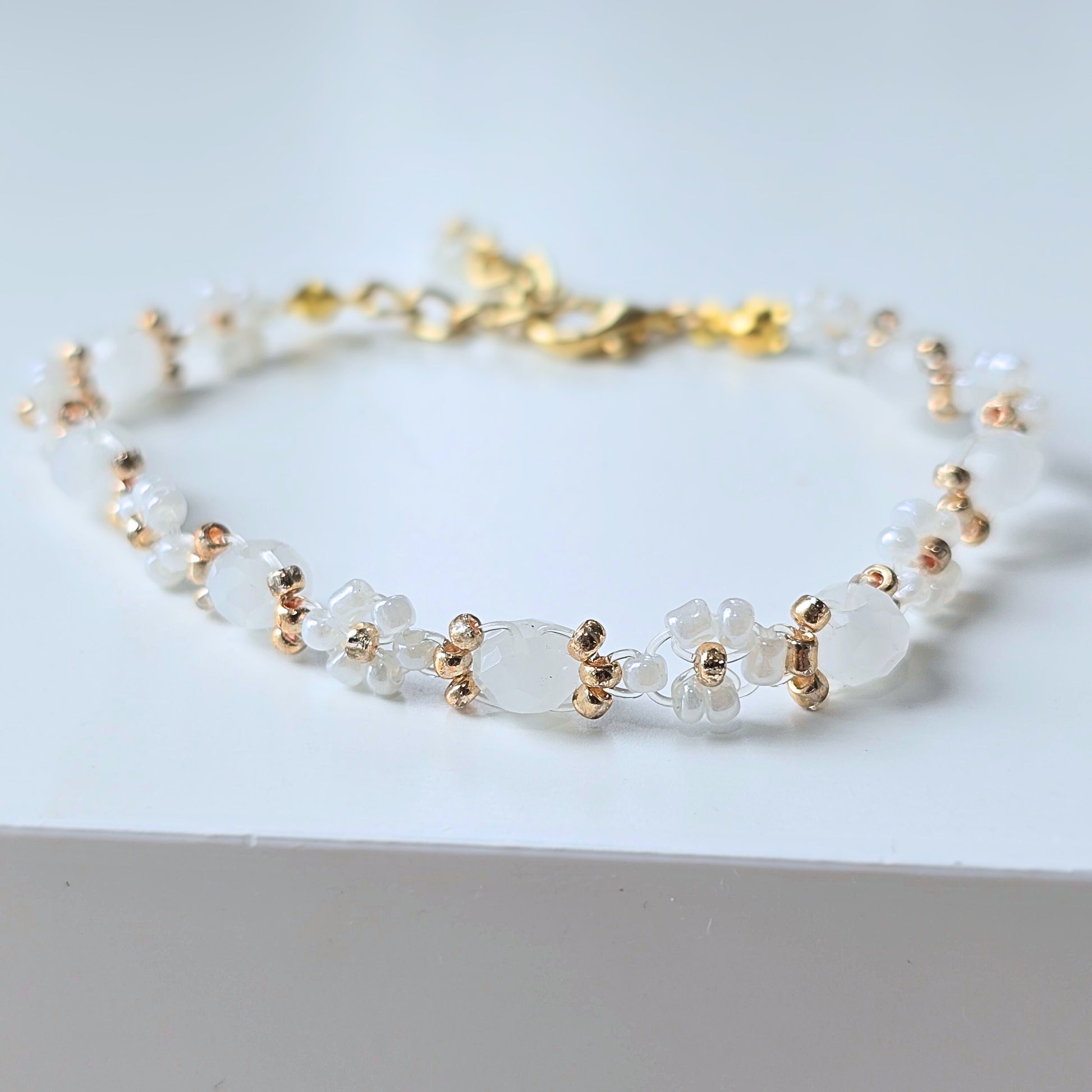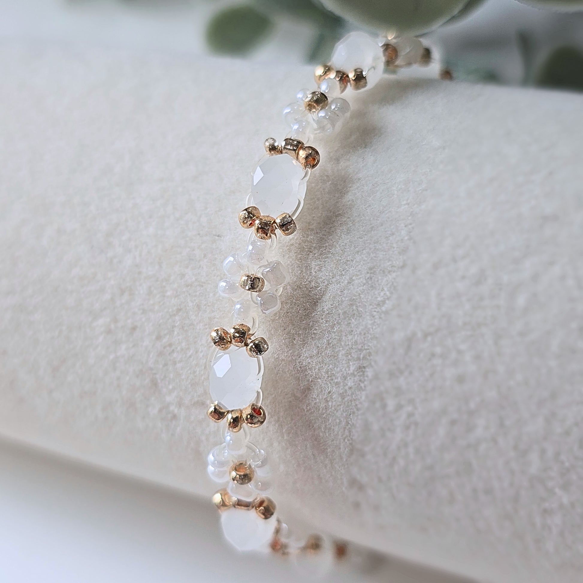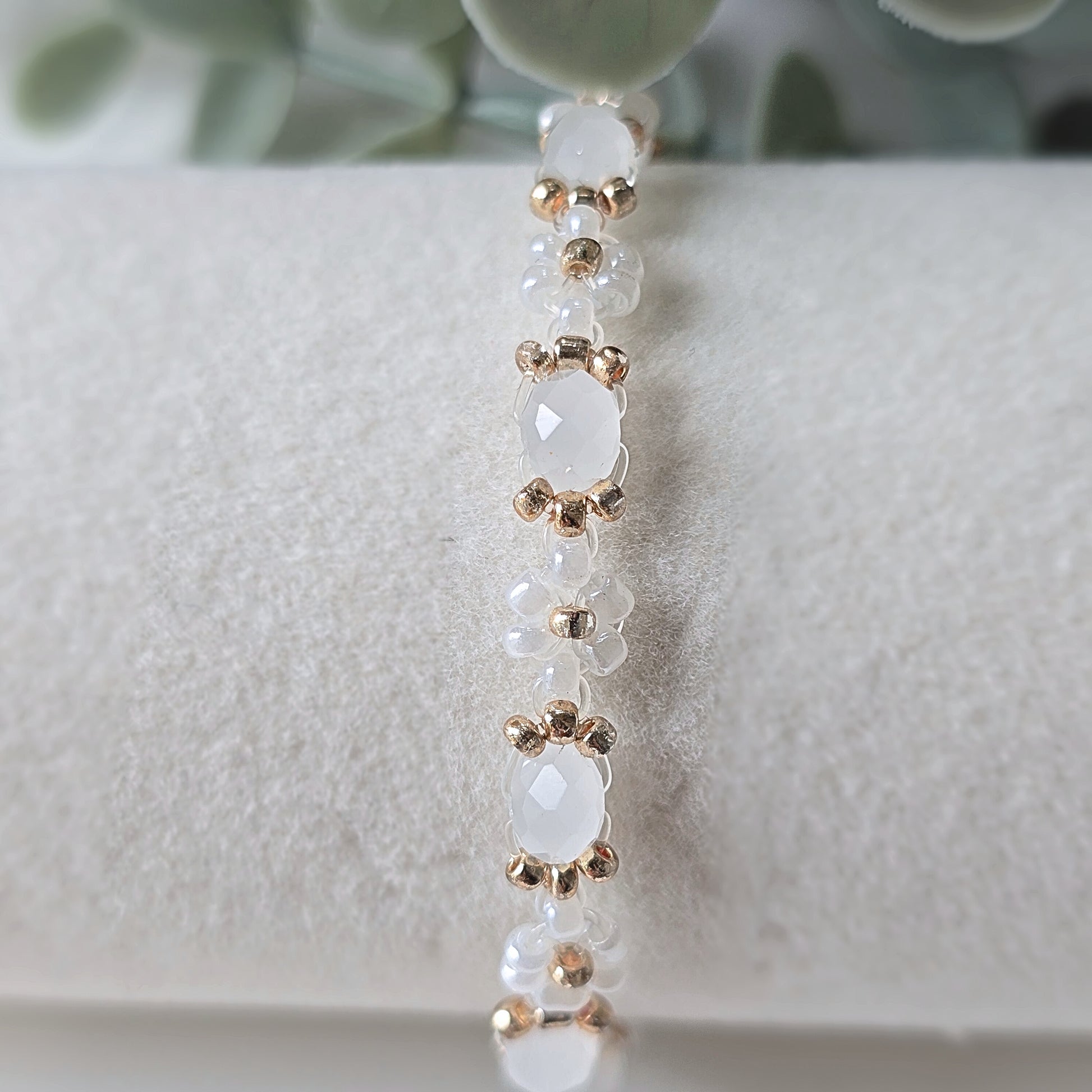 This white milky jade bead bracelet is the perfect accessory for a delicate and elegant style. Crafted with care, its milky white color brings a touch of purity and sophistication to any outfit. Add this dainty piece to your jewelry collection and elevate your look.
