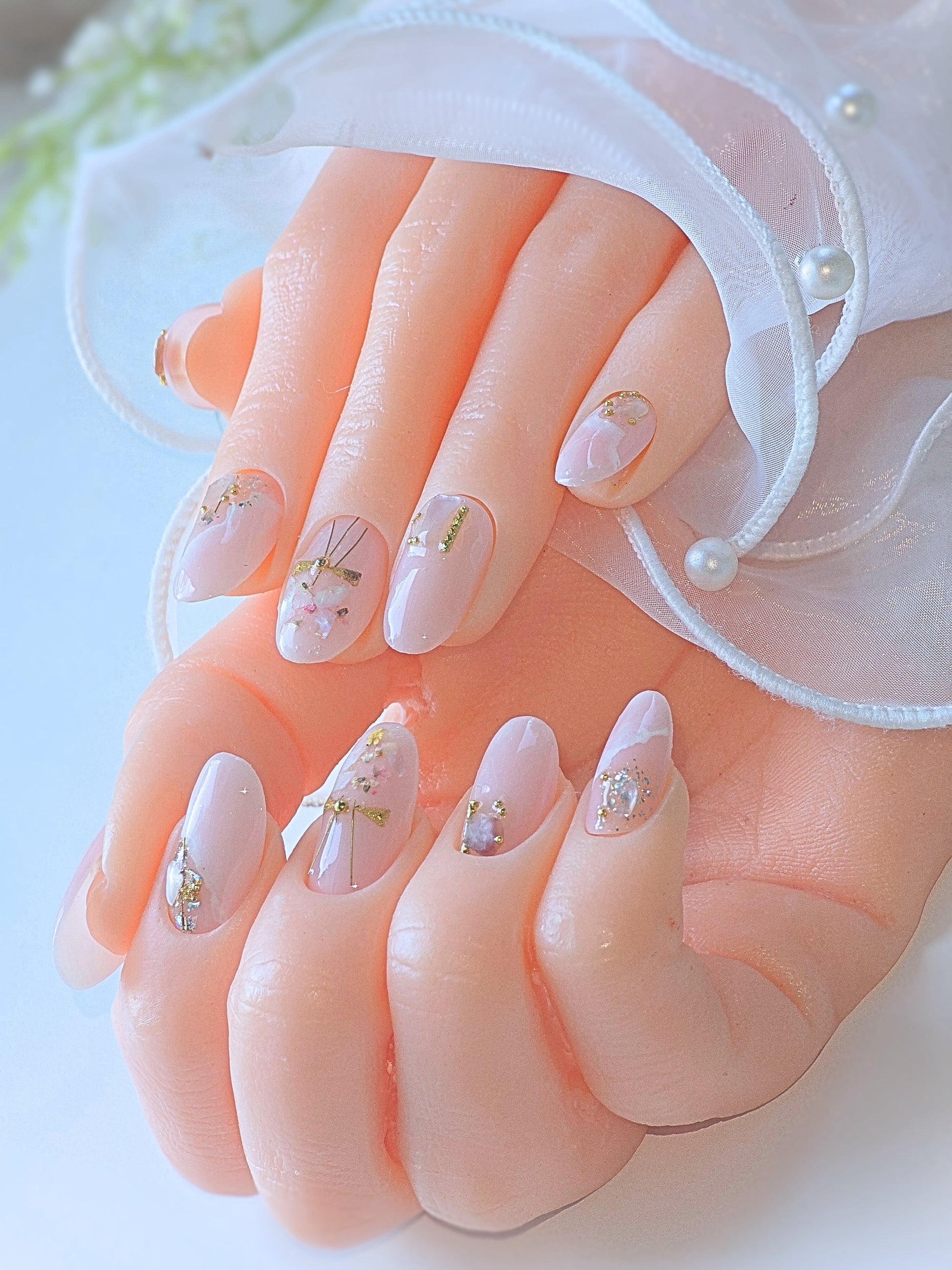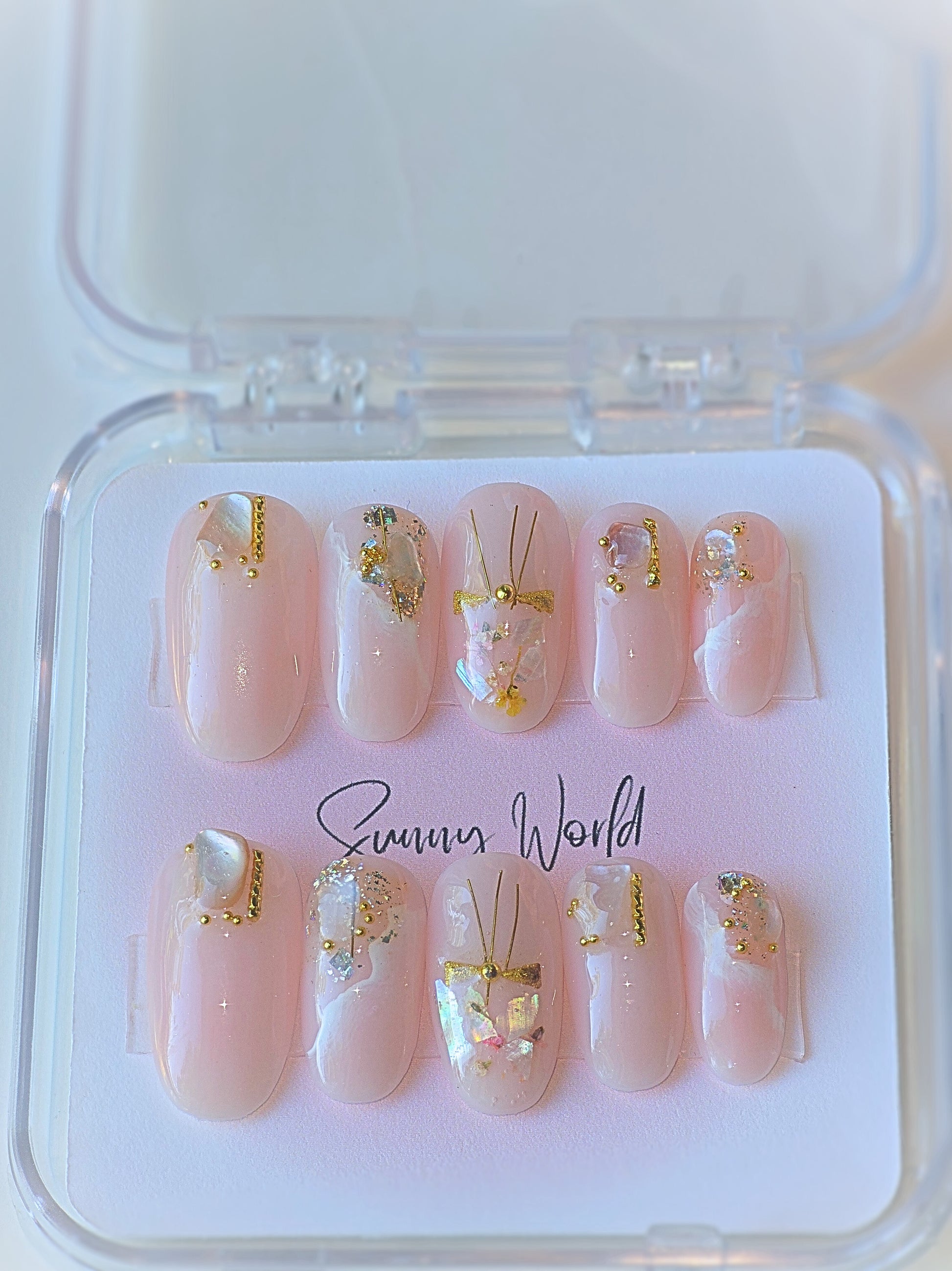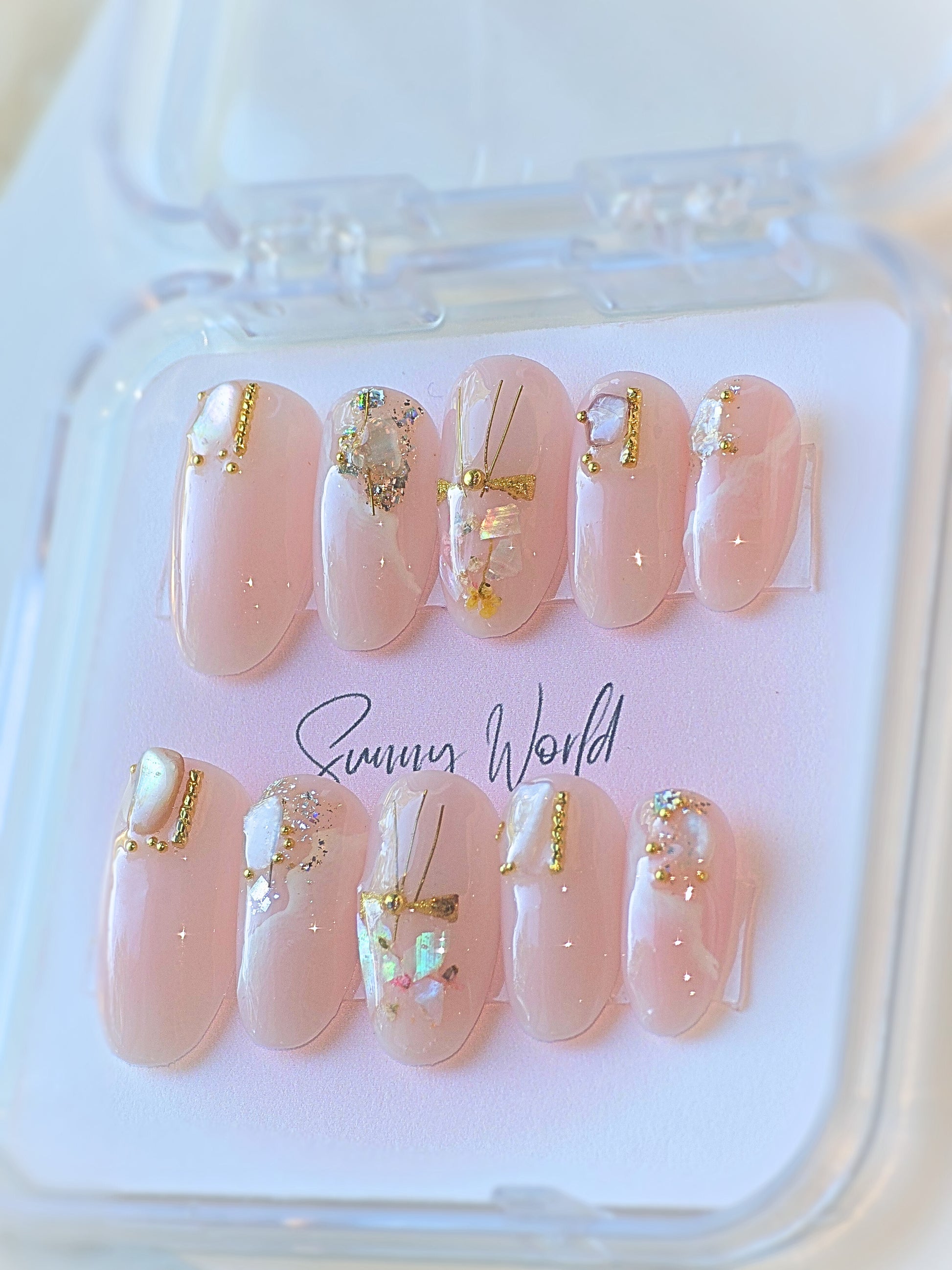 Discover the romance of Jeju Island with these unique press-on nails. Real crystal stones and flower accents add an authentic touch to the waves and sands of this Korean paradise. Experience the love and beauty of Jeju Island at your fingertips. Comes in Medium round shape.