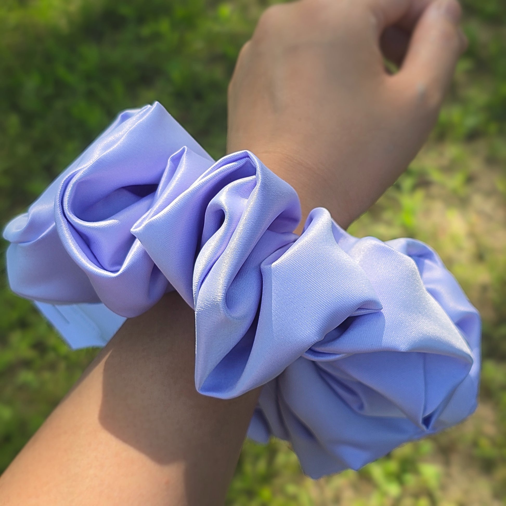 These handmade scrunchies are the perfect accessory for any hairdo. Made from scratch with high quality materials. It is an XL size offers both style and comfort. Elevate your hair game with the beautiful, expertly crafted scrunchies