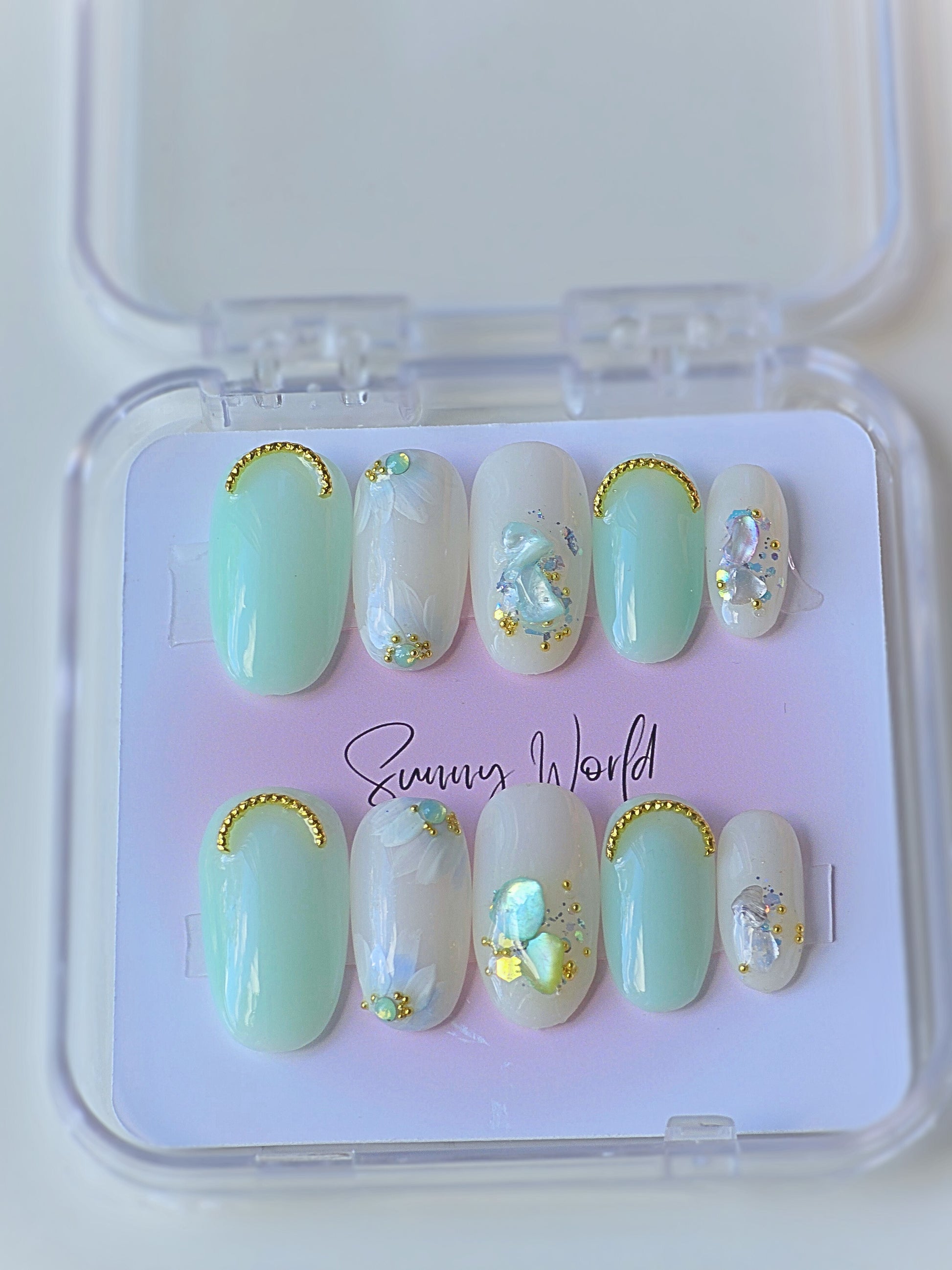 Milky Flower combines luxury and natural elements with its medium round shape and handmade design. The white flower in a milky bath adds a unique touch, while real crystal rocks and luxury beadings elevate its beauty. Enjoy the elegant turquoise color of this stunning piece.