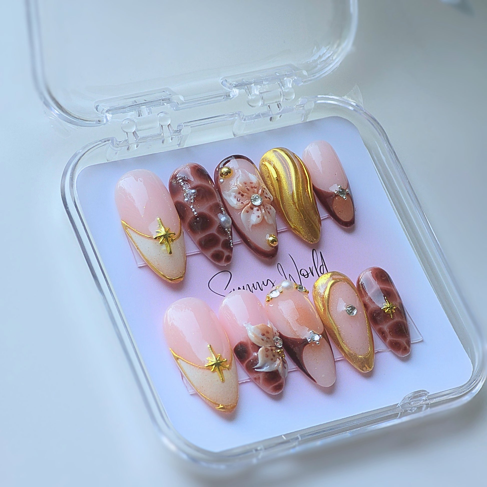 Nemera is a high-quality press-on nail set featuring a trendy leopard design. Made with premium materials, these nails provide a perfect and long-lasting manicure without the need for a salon visit. Add a touch of style to your look with ease.