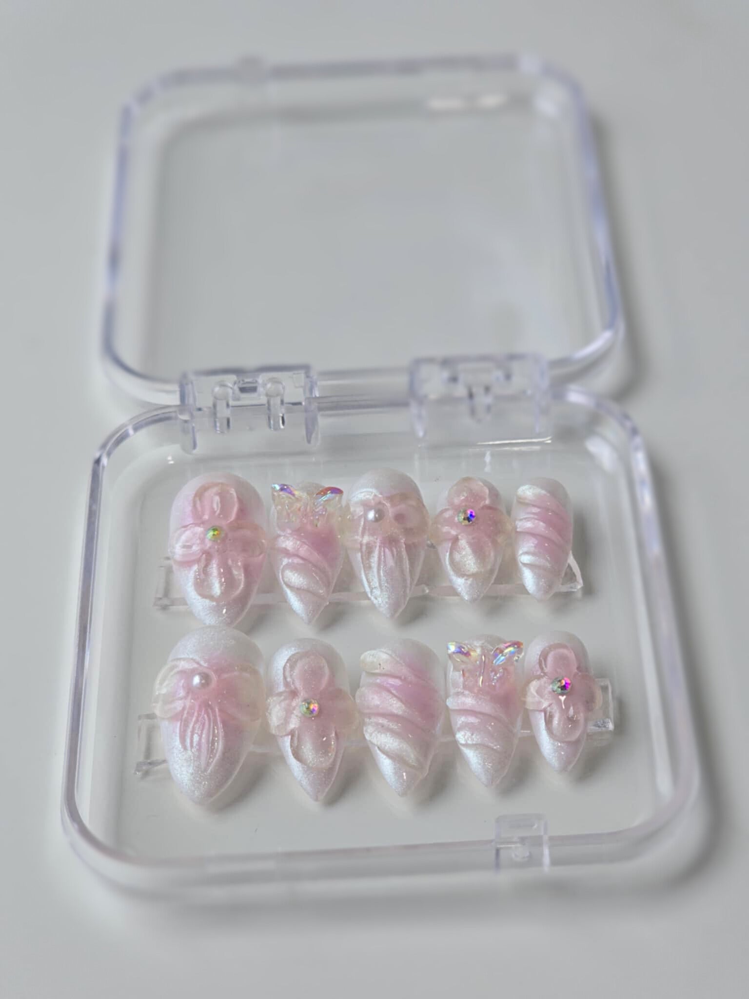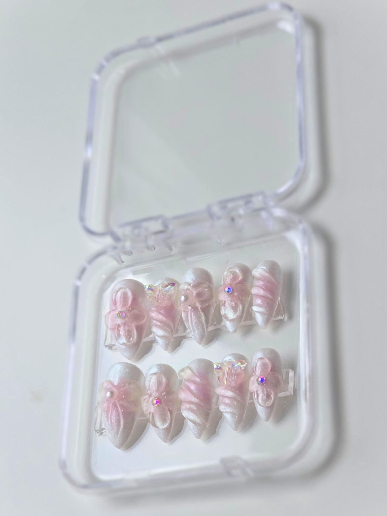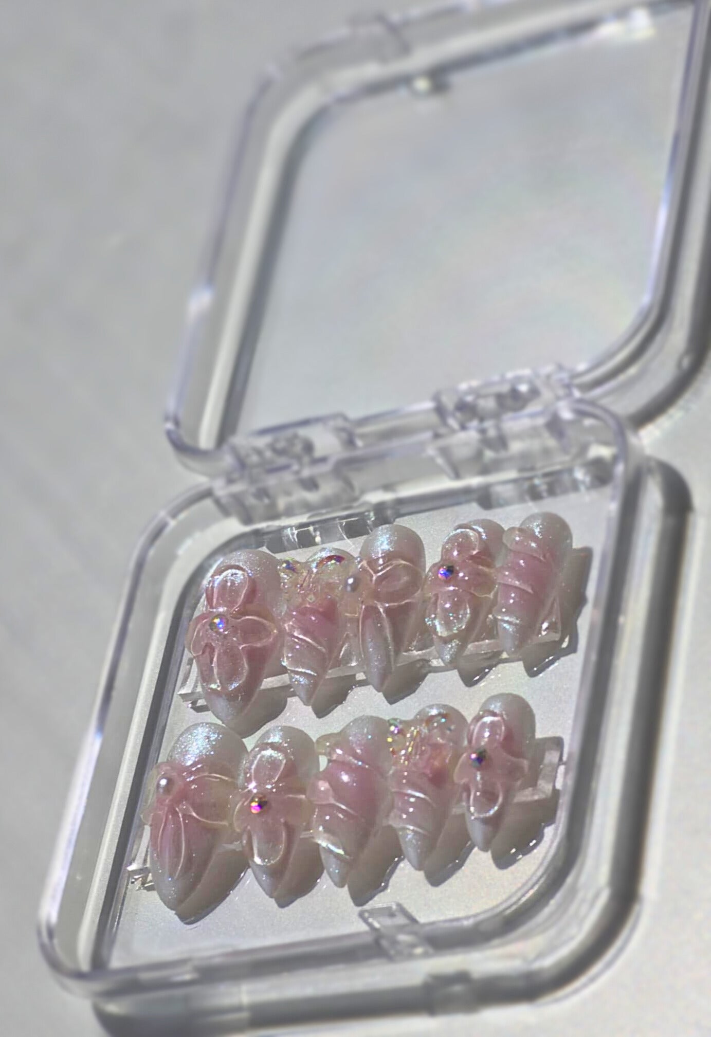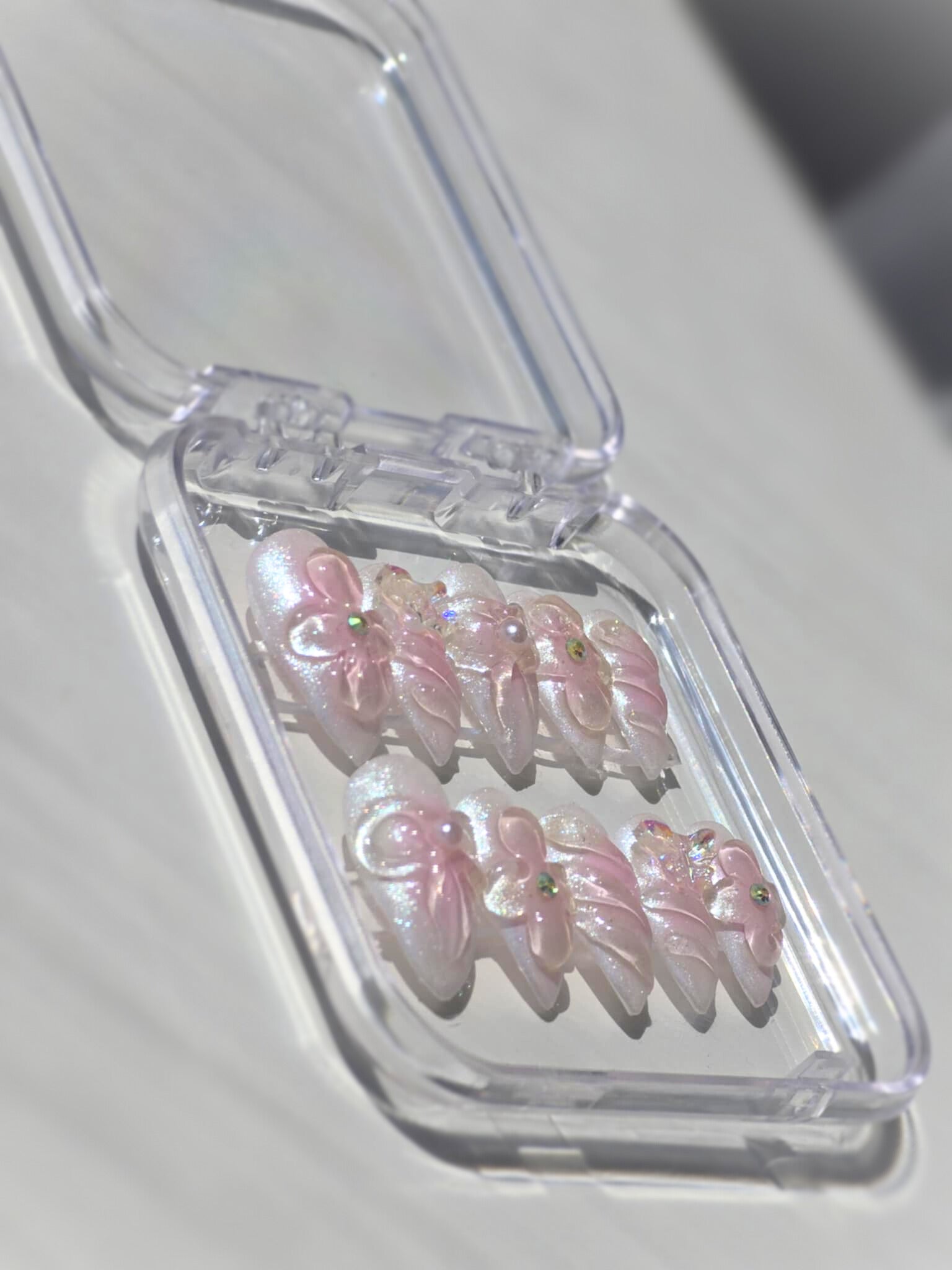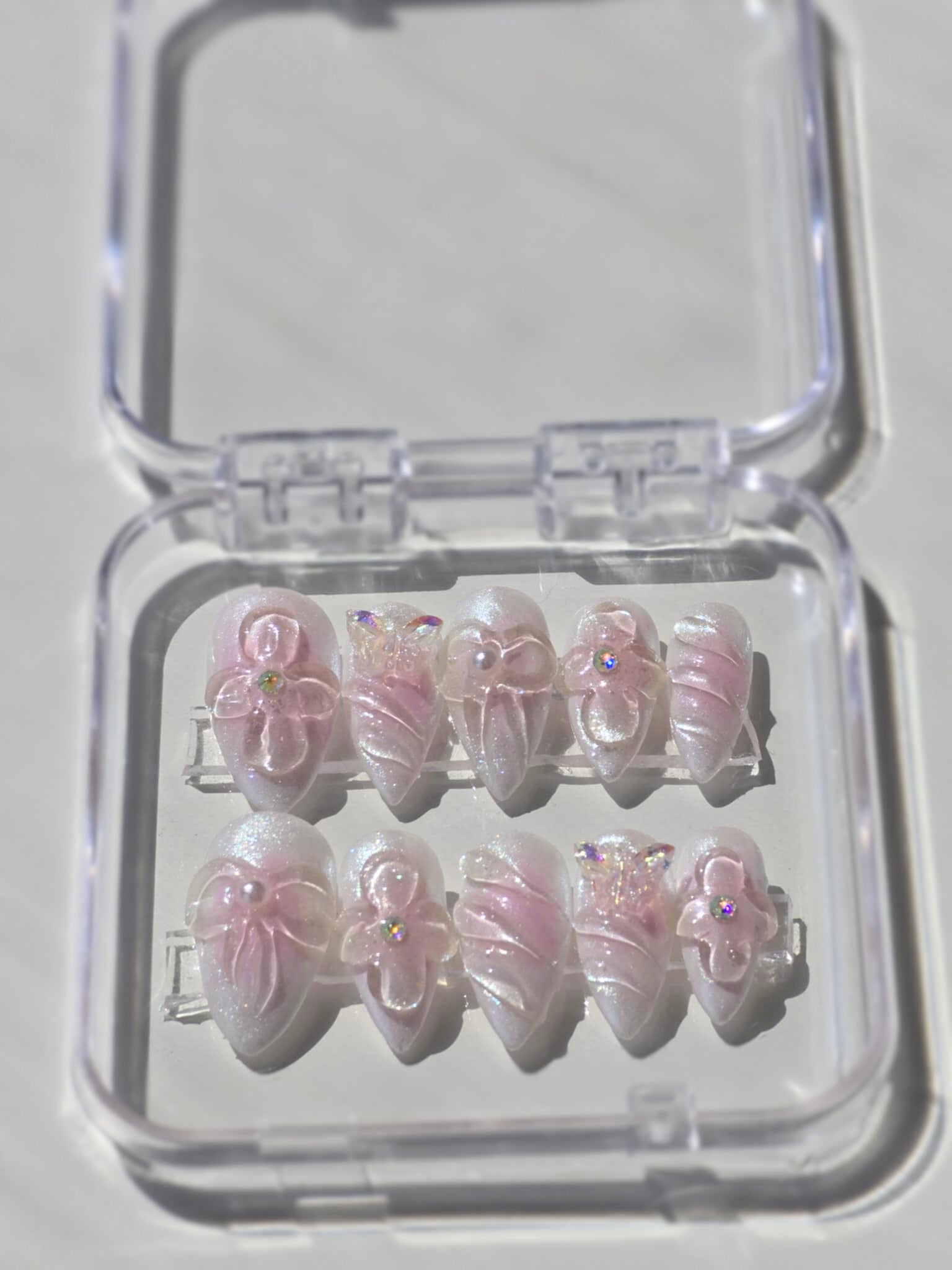 Sparkle Dream is made with high quality reflective sparkle chrome. It is very detailed. The photo shows the press on under normal lighting and under sunlight. Under the sunlight, the nails sparkles almost like water effect. It is a very beautiful and unique press-on design by the shop.