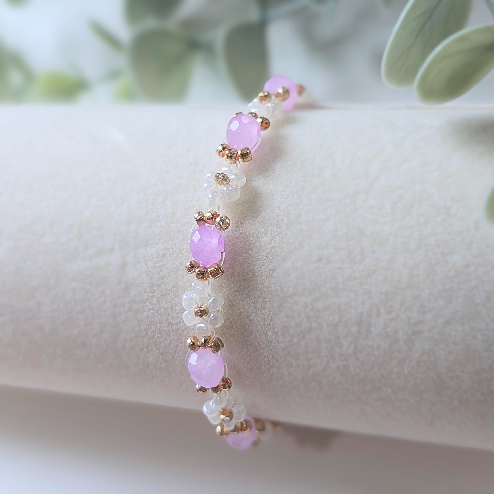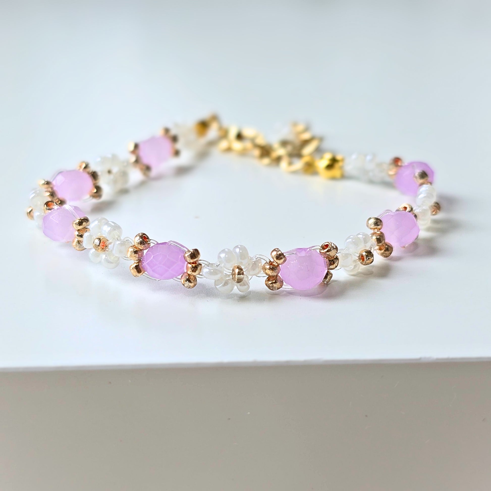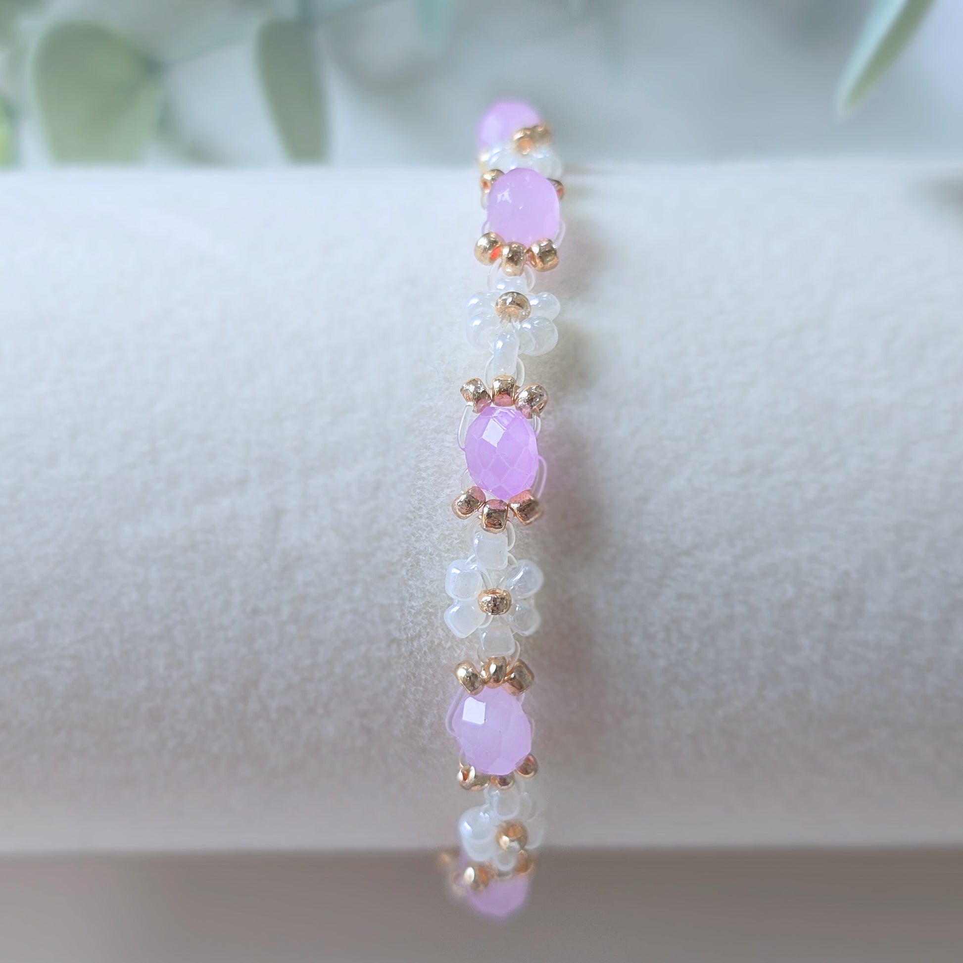 This dainty Carnation bracelet features a milky pearly purple crystal bead, giving it a cute and elegant look. Expertly crafted with quality materials, it adds a touch of charm to any outfit.