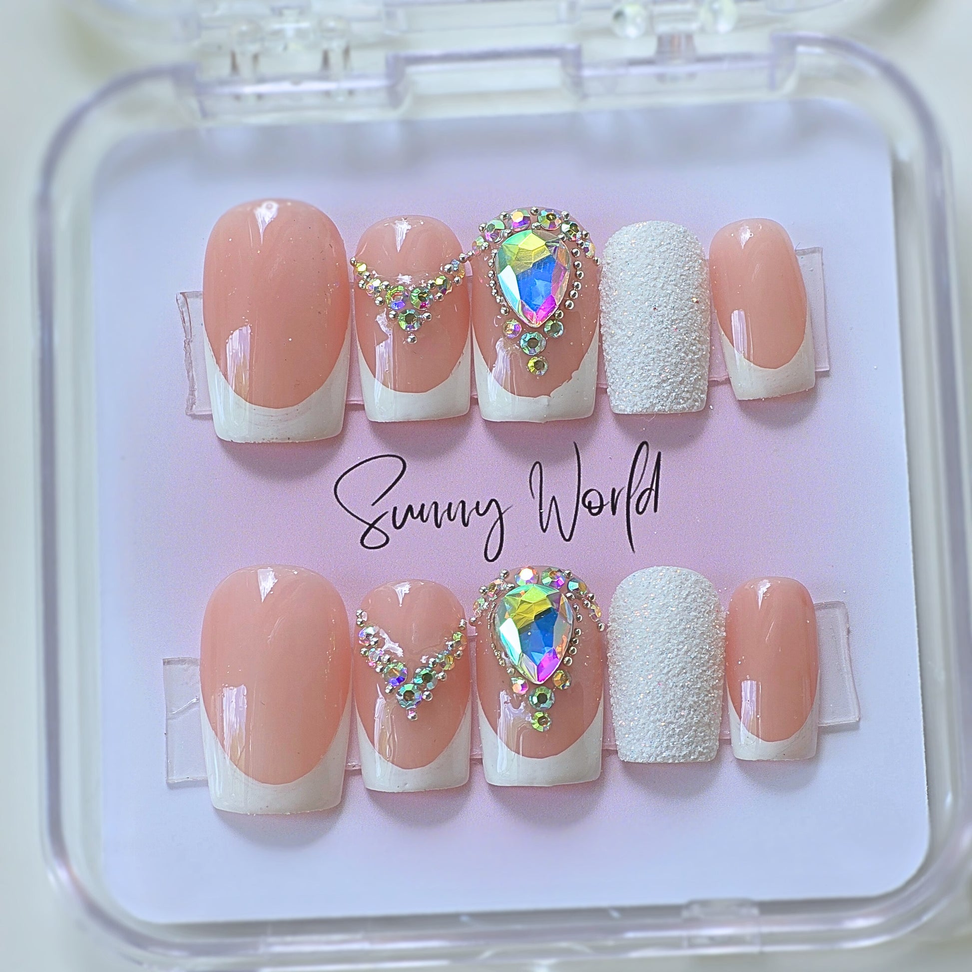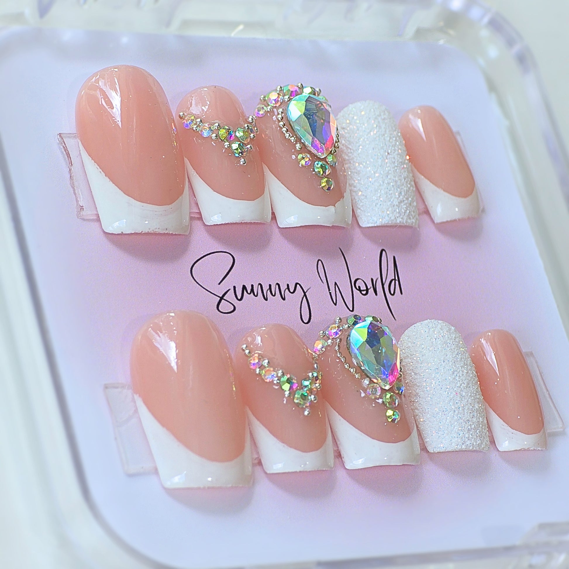 Lucinda is the ultimate choice for those seeking luxurious and glamorous nails. Designed with a medium square press nail and adorned with fairy dust, this french tip style nail is both stylish and sturdy. Invest in long-lasting and beautiful nails with Lucinda.